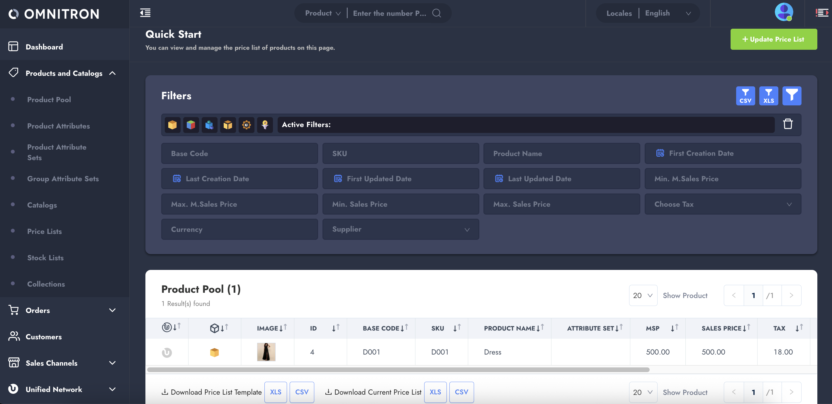 Every product must be assigned a price. To manage this, you first need to create a **Price List** in Omnitron. A price list can include multiple products, and each can have its own price within that list.