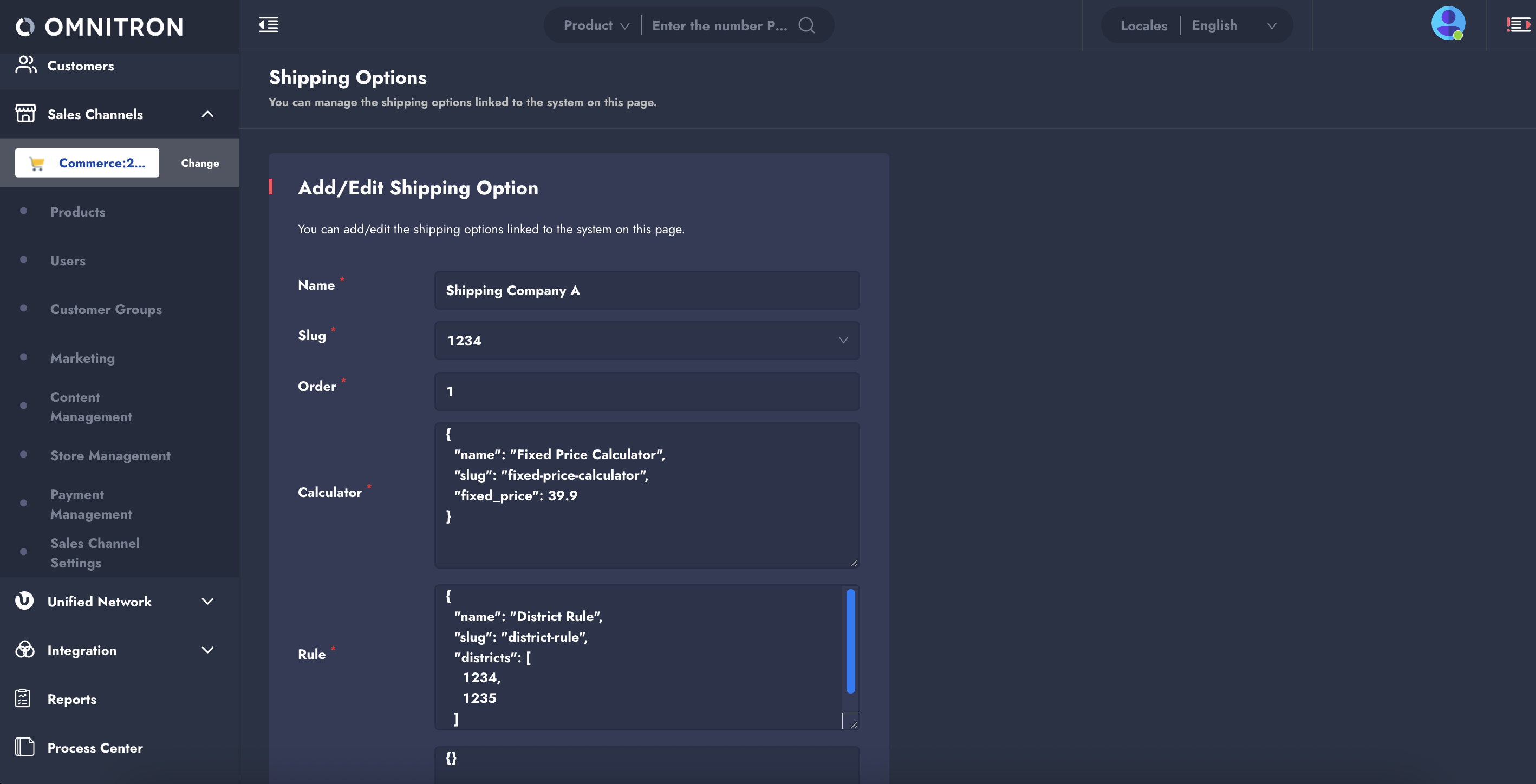 See the [**Shipping Company**](https://app.gitbook.com/s/IbwGN7KwvYi0iLbjtnXz/omnitron/settings/how-to-add-and-configure-a-shipping-company-in-omnitron) and [**Shipping Options**](https://app.gitbook.com/s/IbwGN7KwvYi0iLbjtnXz/omnitron/sales-channels/sales-channel-settings/how-to-manage-shipping-options-in-omnitron) documentation for full setup guidance.