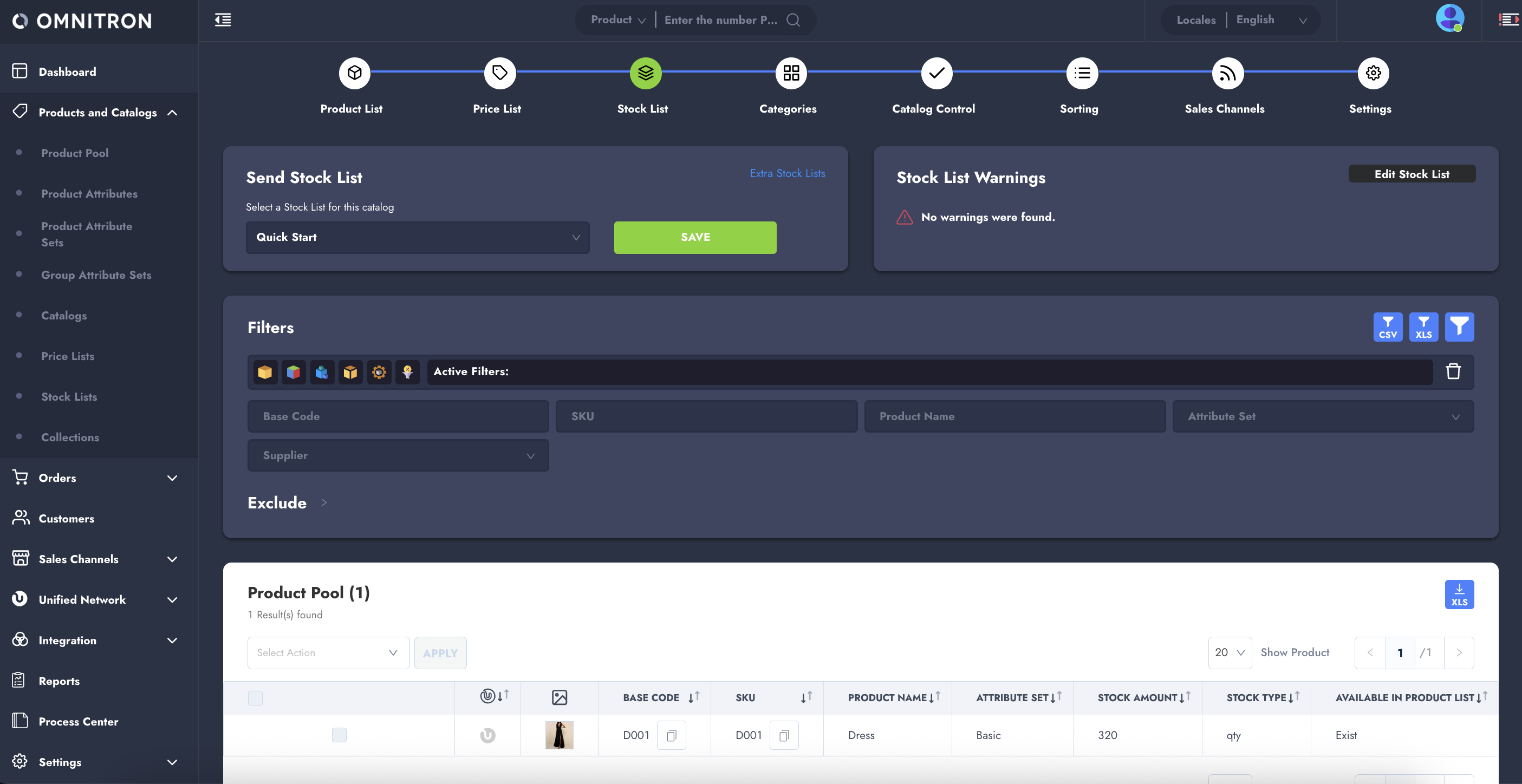 Navigate to the **Stock List** step to assign a stock list to the catalog.
