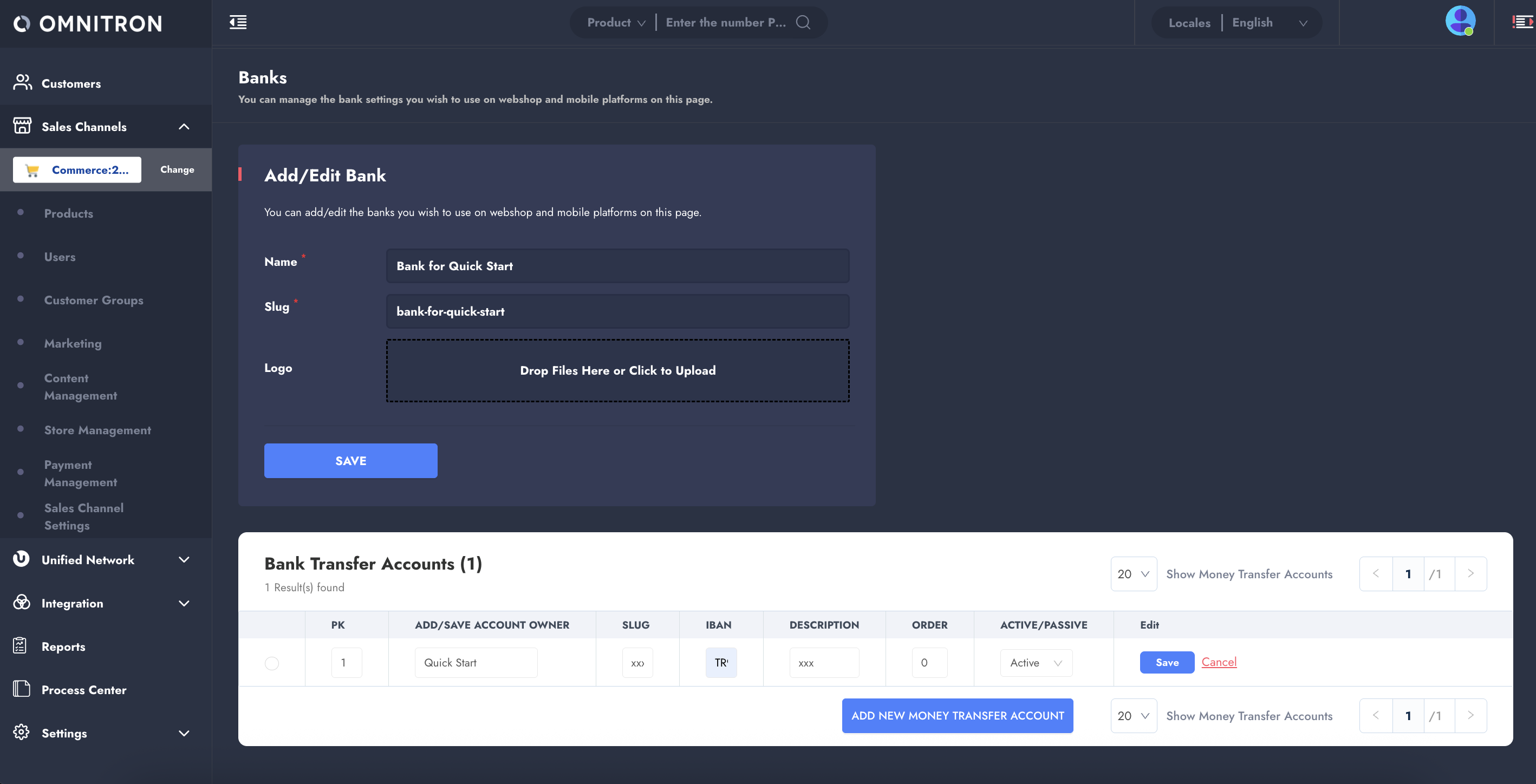 Detailed instructions are available in the [**Banks**](https://app.gitbook.com/s/IbwGN7KwvYi0iLbjtnXz/omnitron/sales-channels/payment-management/how-to-manage-banks-in-omnitron) documentation.