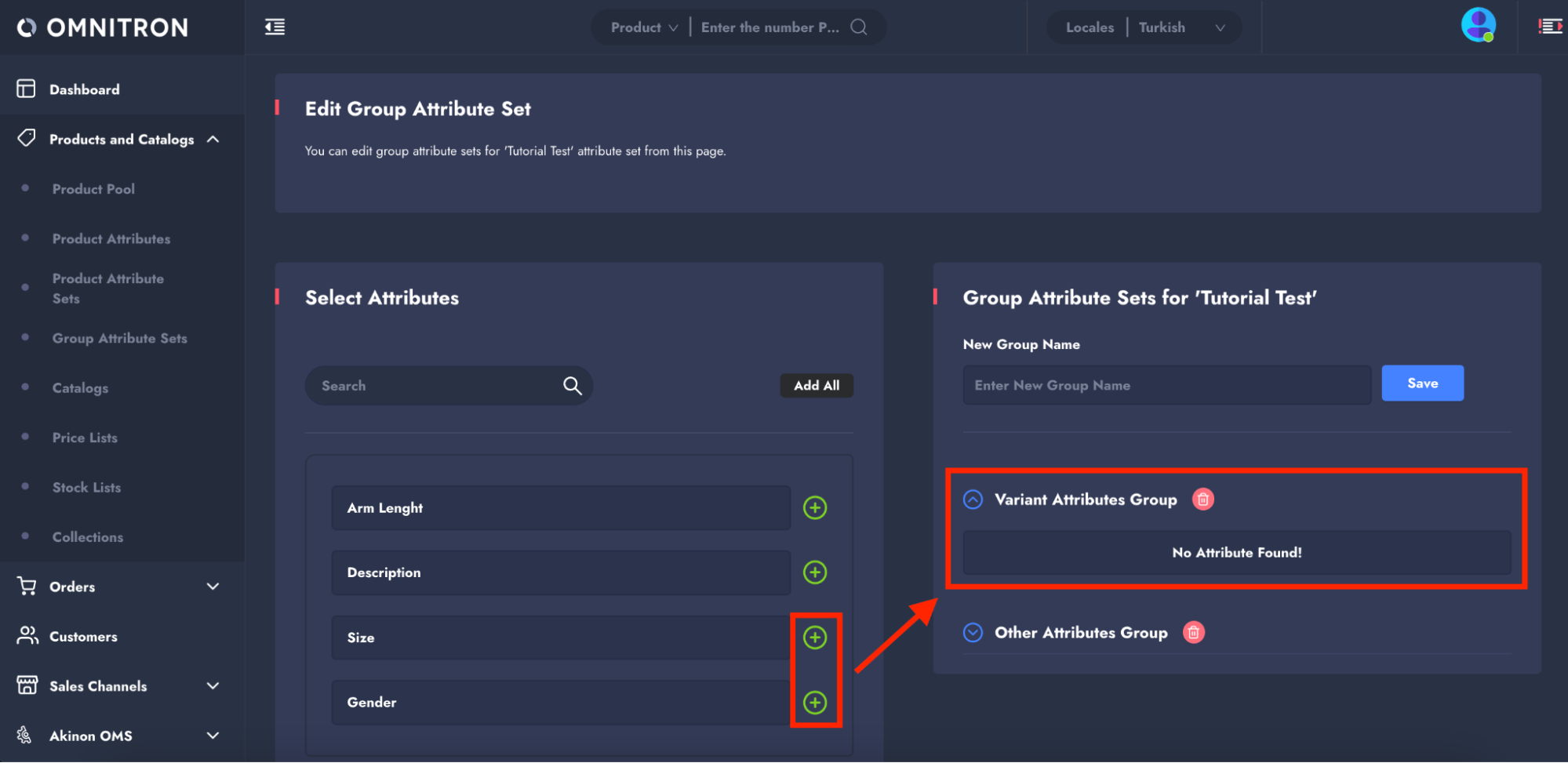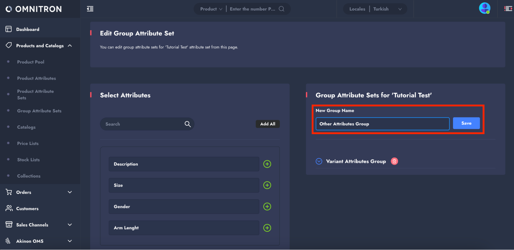 To configure **Group Attribute Sets**, an attribute set must first be created. For detailed instructions, refer to the [Attributes & Attribute Sets](https://app.gitbook.com/s/IbwGN7KwvYi0iLbjtnXz/omnitron/products-and-catalogs/how-to-create-product-attributes-and-attribute-sets-in-omnitron) tutorial on creating attribute sets.