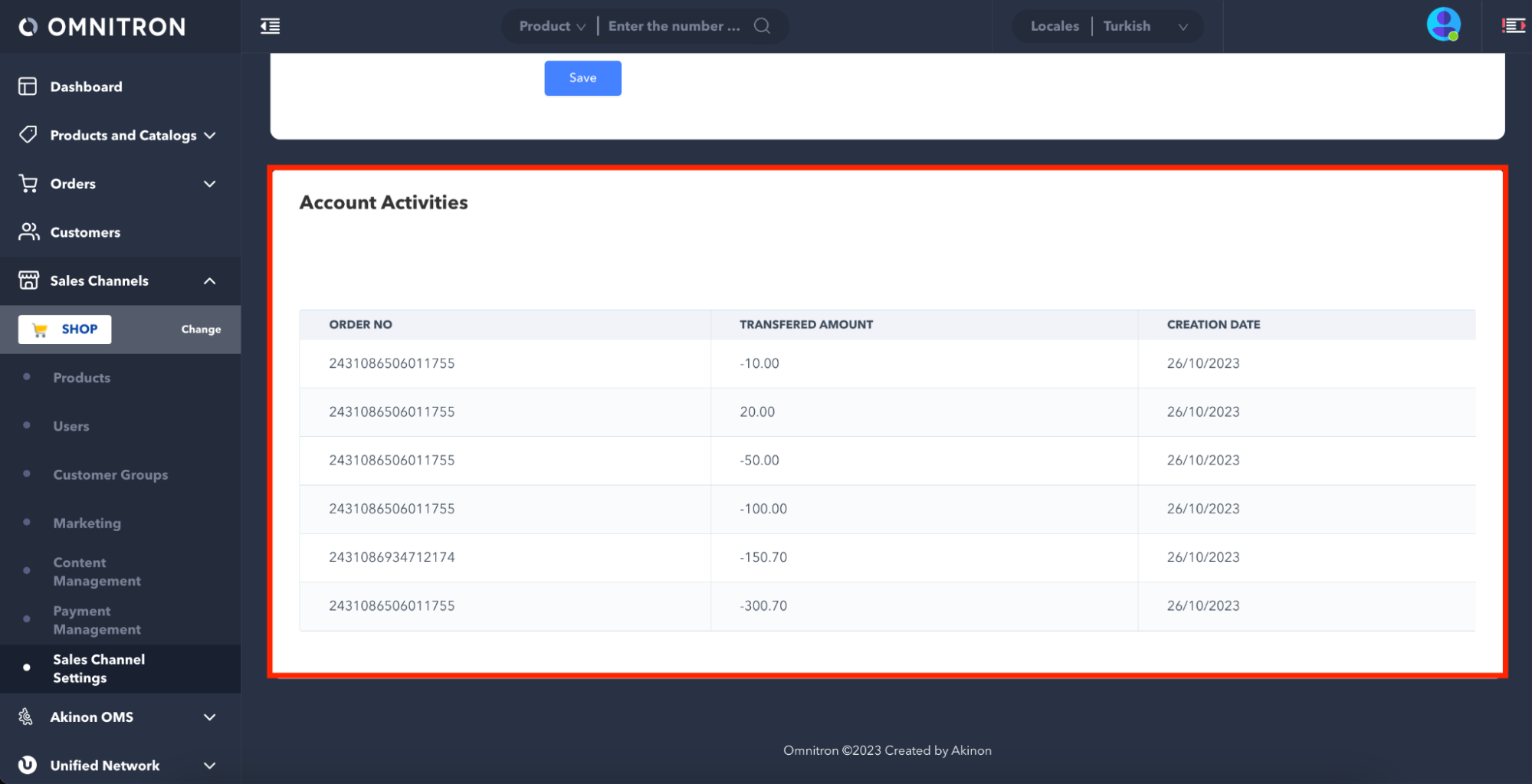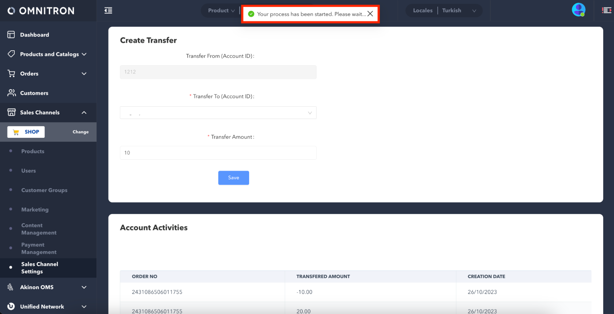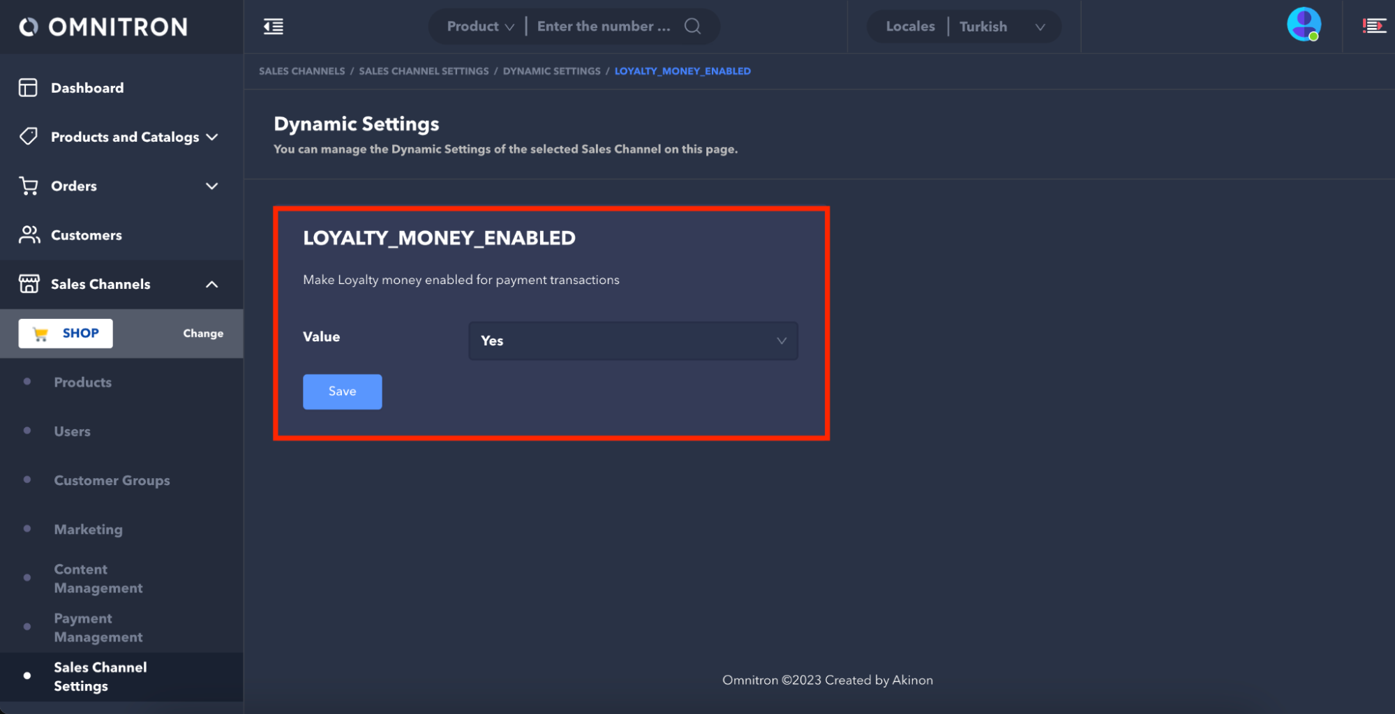Set its Value to Yes, click the Save button. This will enable the loyalty money transaction for the relevant sales channel.