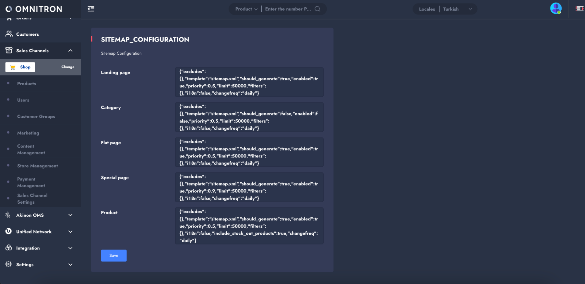 Sitemap configuration is used to structure, filter, and activate or deactivate specific page types in the sitemap. Defined in Dynamic Settings as SITEMAP_CONFIGURATION, it is stored in JSON format.