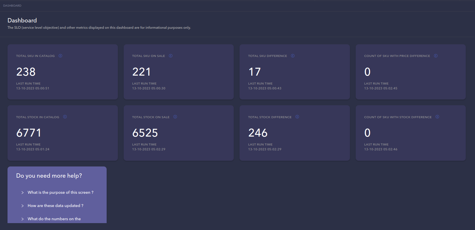 It refers to the number of SKUs that are included in the catalog but not available for sale on the marketplace. In this section, a comparison is made between the products available for sale in Omnitron and those listed for sale on the marketplace. Specifically, products in Omnitron are considered based on having a price, stock greater than zero, a category, an image, and being listed in the catalog.