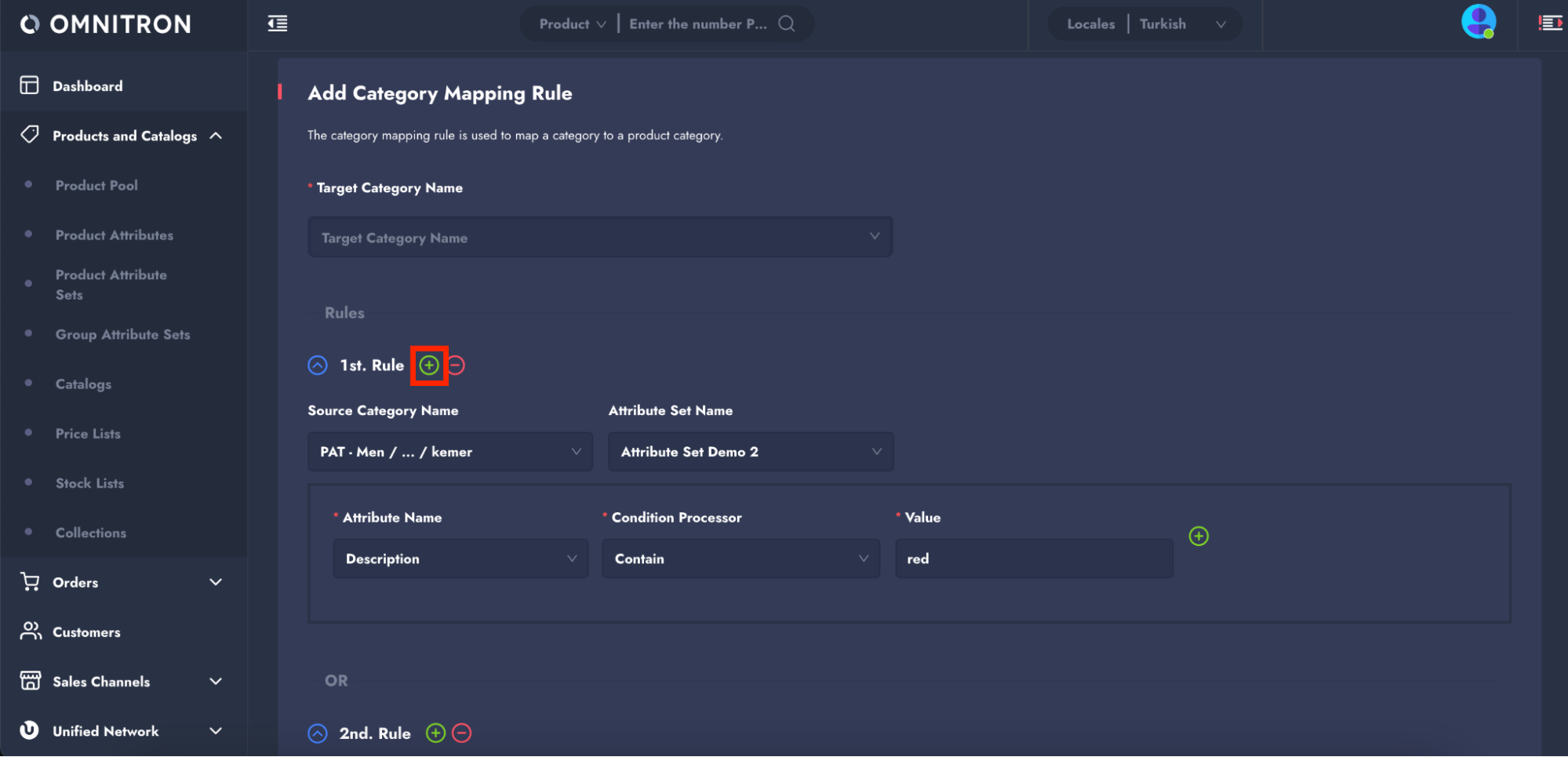 * Add multiple rules under the same target category using the "+" button next to the **"1st Rule"** field, connected with **"OR"** logic.
