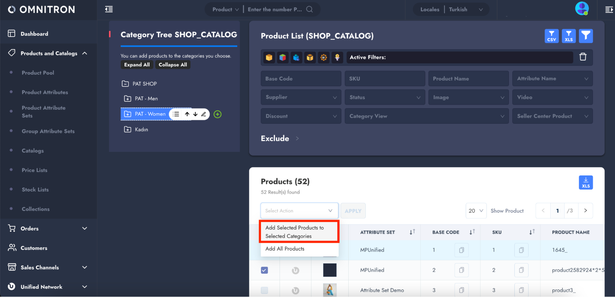 5. Use the "Select Action" dropdown, select **"Add Selected Products to Selected Categories"** and click the **“APPLY”** button.