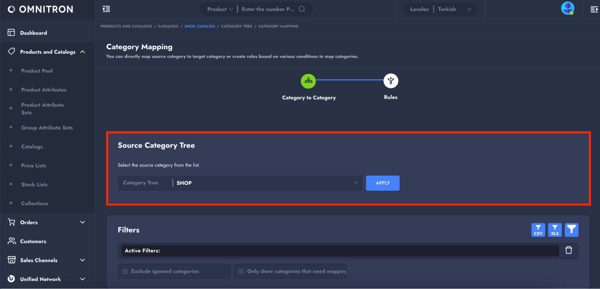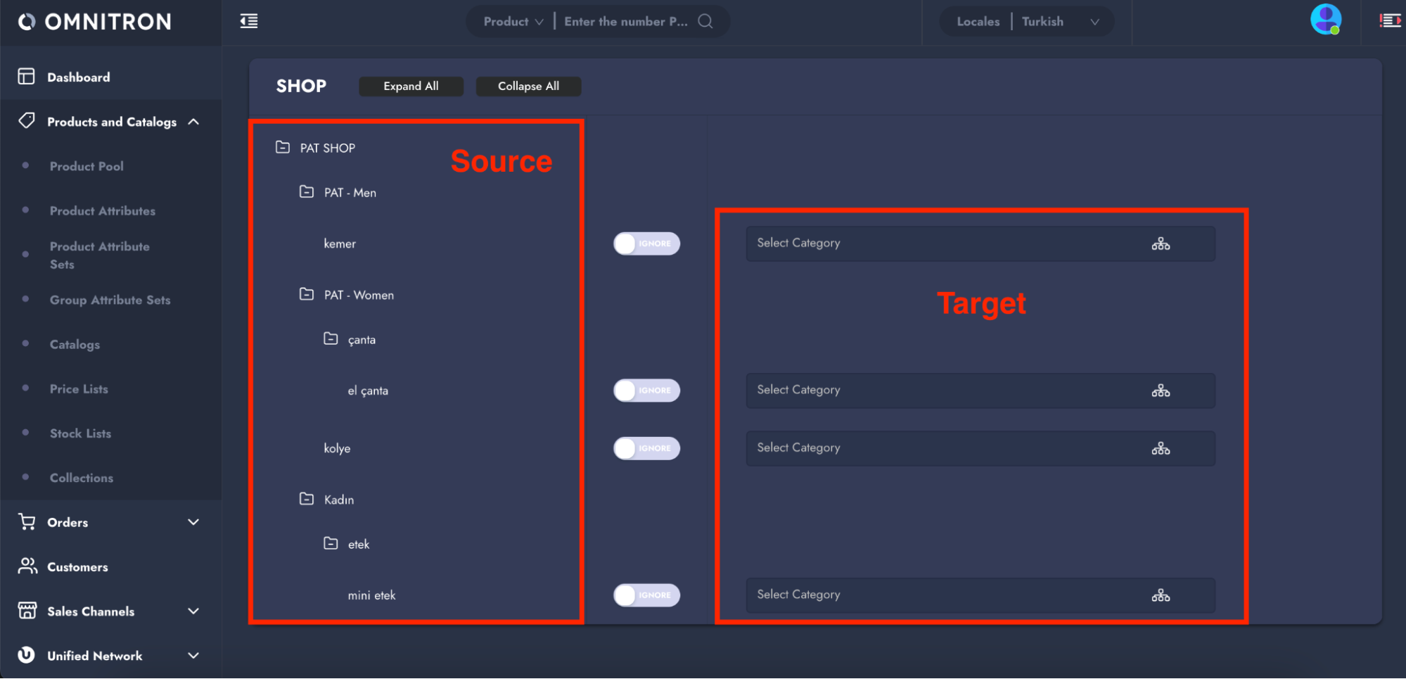 **NOTE:** Ensure that a source category tree exists in Omnitron from a previously categorized sales channel.