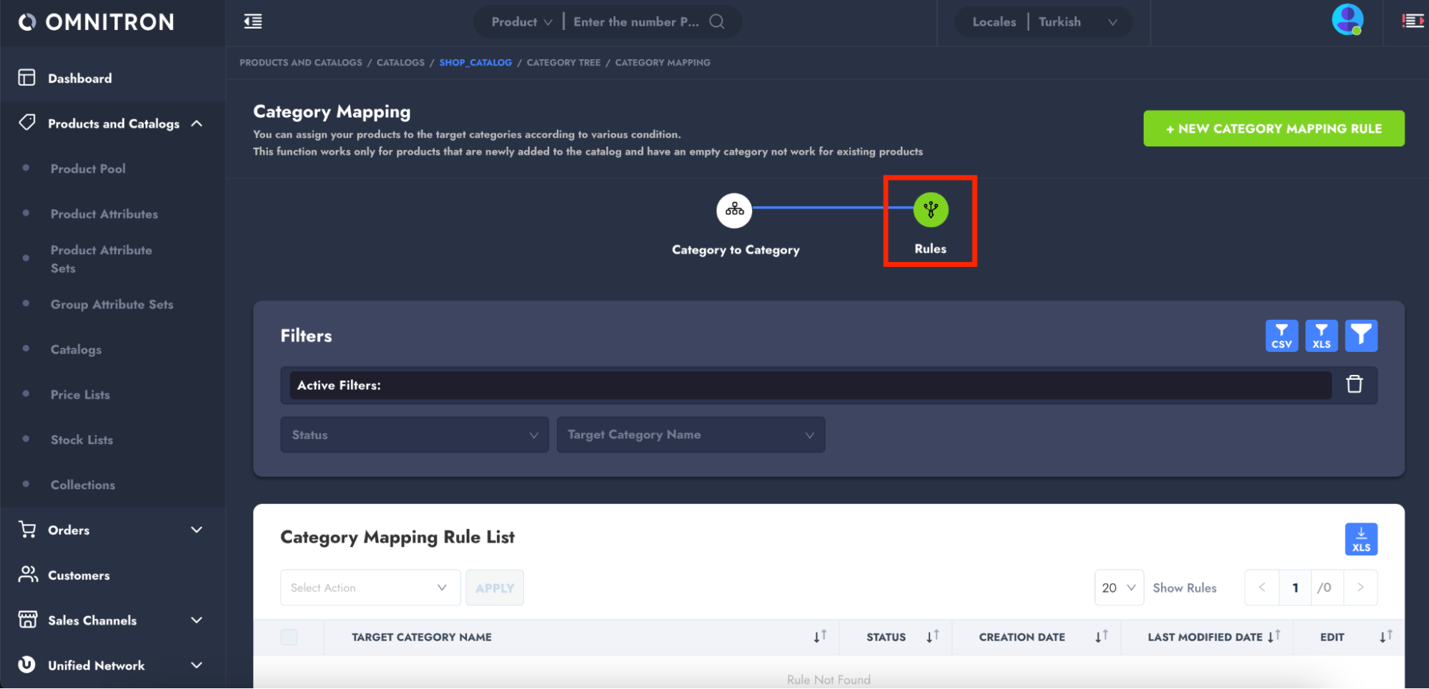 * Click the **"+NEW CATEGORY MAPPING RULE"** button in the top-right corner.