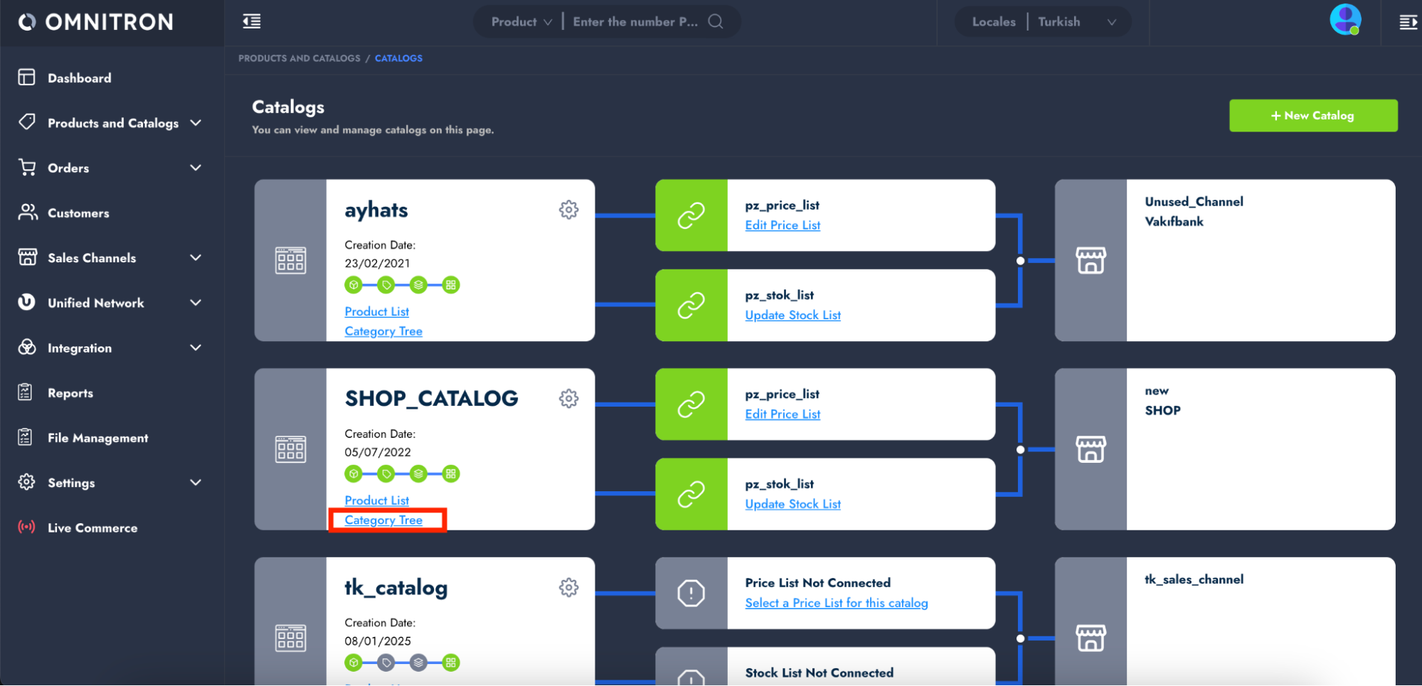 2. Click on the **Category Tree** of the relevant catalog.