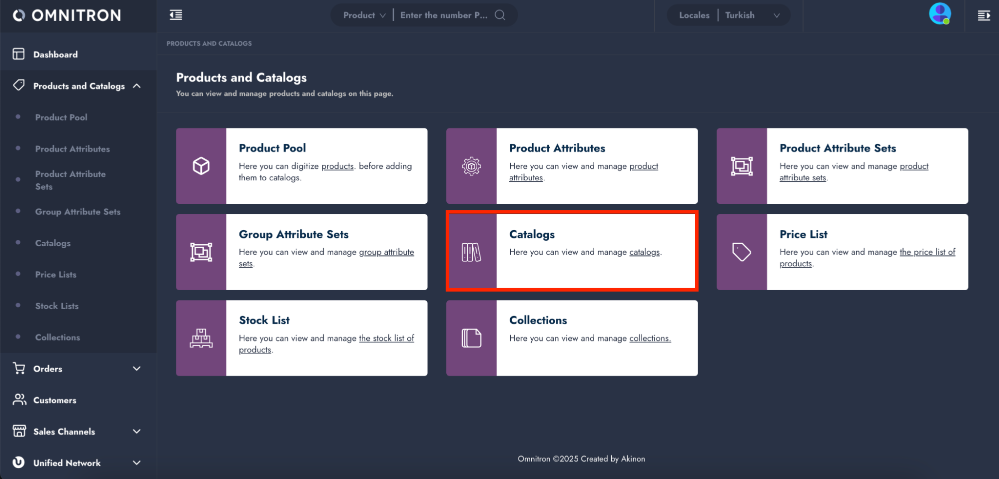 1. Navigate to the **Products and Catalogs > Catalogs** in Omnitron.