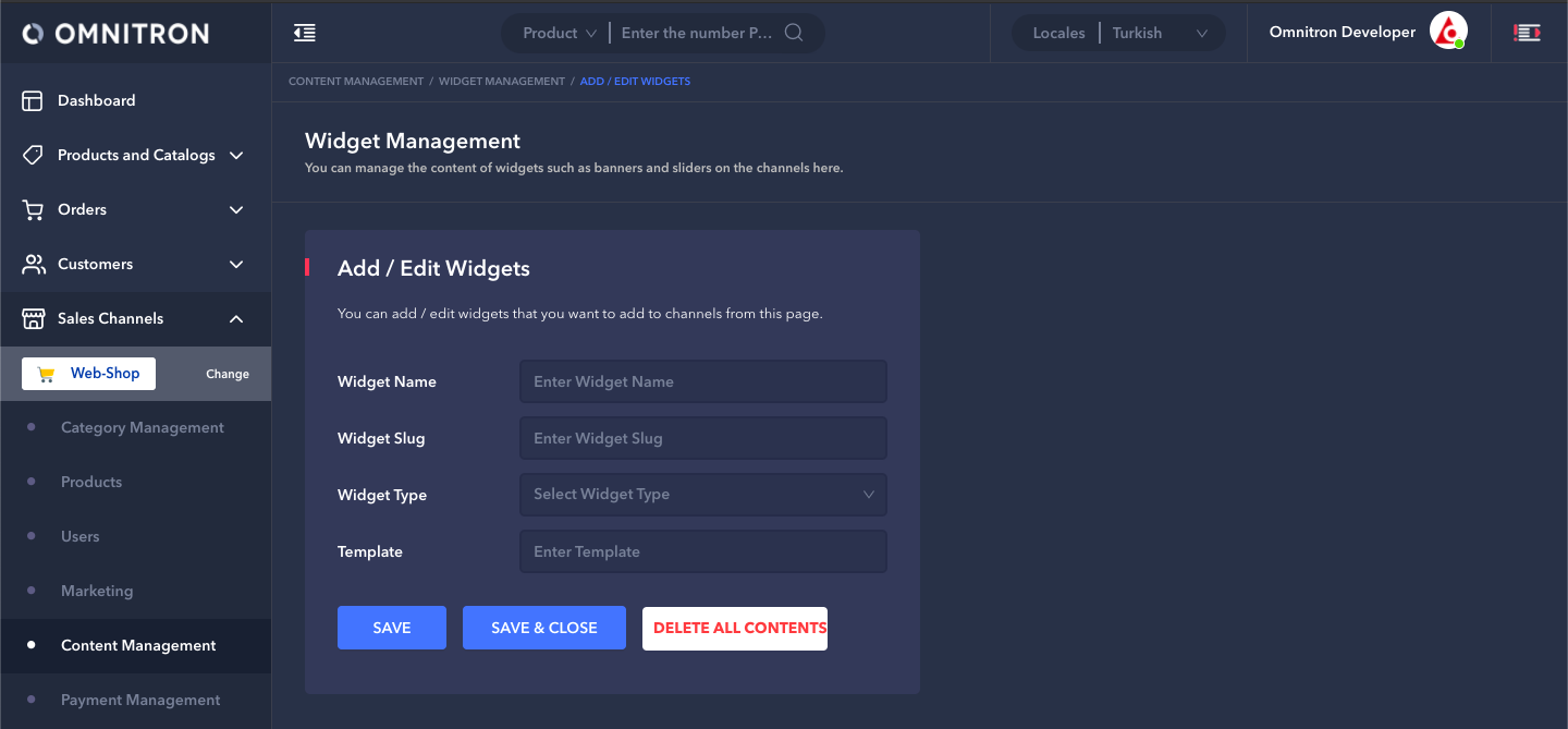 It is used to localize widgets according to languages. For example; Considering that the same store sites in different languages are managed from the same back office panel, the widget where the "is_localizable" parameter is "true" can be added with different languages.
