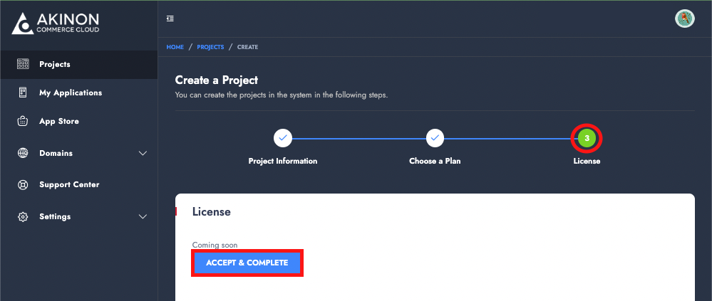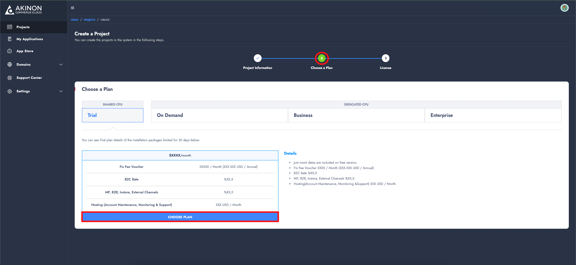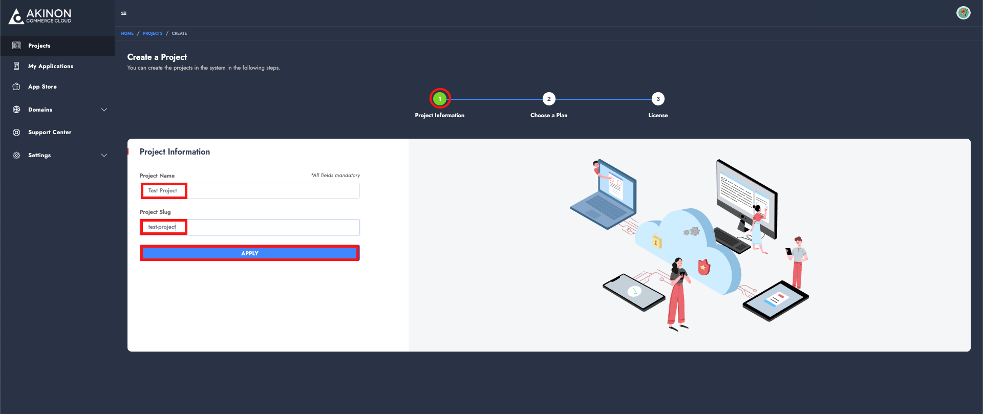 After completing the required information, click on the Apply button. This action will redirect users to the plan selection screen for the specified project, where they can proceed with further customization and setup.