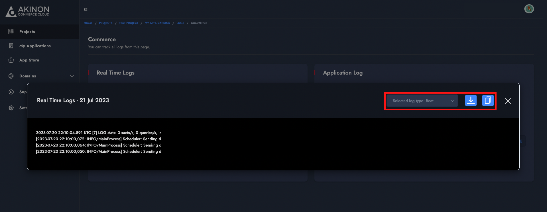 By clicking on the View Real Time Logs button, users can access real-time logs, providing up-to-date information on the ongoing processes. Moreover, users have the option to copy and download selected log types.