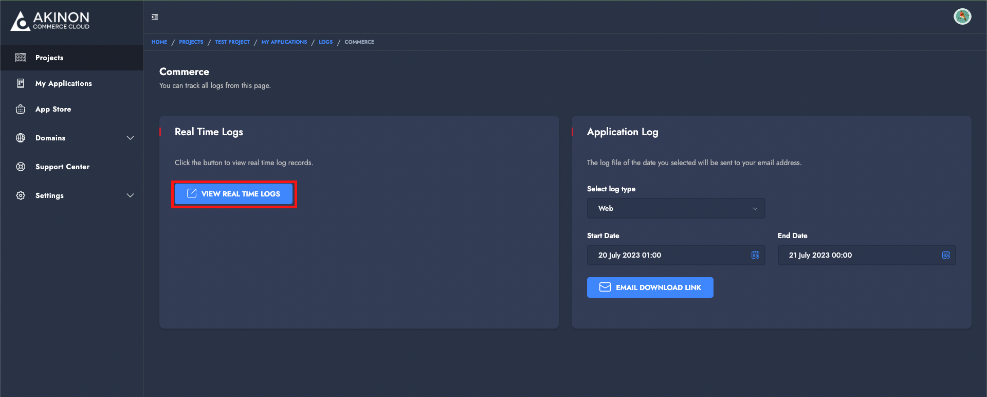 Users can easily obtain logs based on log types and for a specified date range from the Application Log field. The platform provides the convenience of sending the email download link of the logs directly to the user's email address.