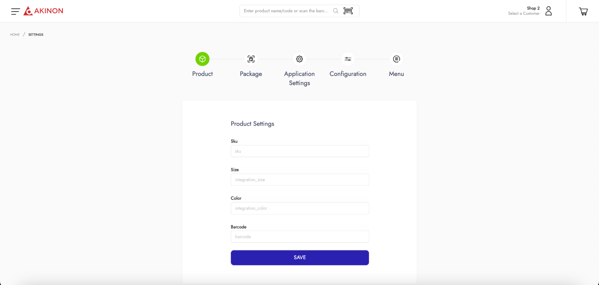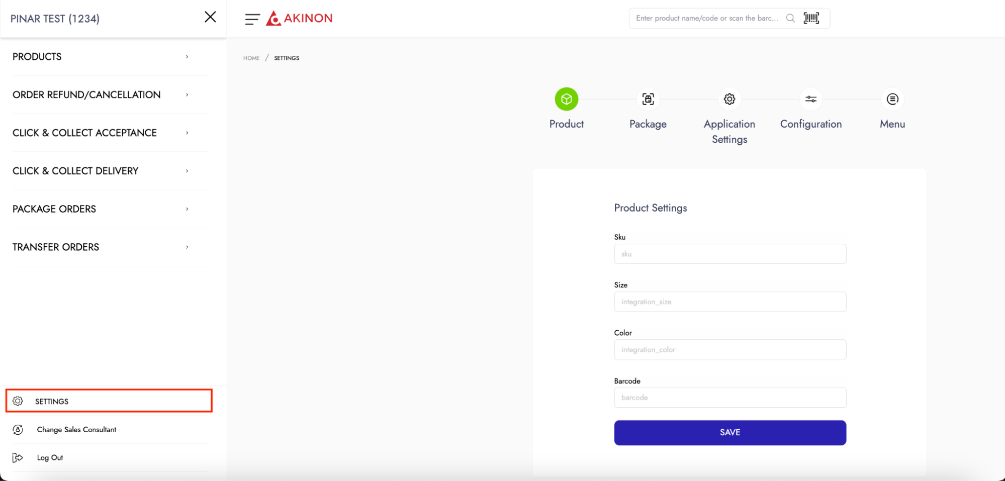 When entering the *Settings* screen, the settings page named *Product Settings* opens. From this page, it is possible to customize the attributes that the application will show for products. The product attribute fields shown below, the display of any attribute available in Omnitron can be done in the relevant fields in the Instore application.