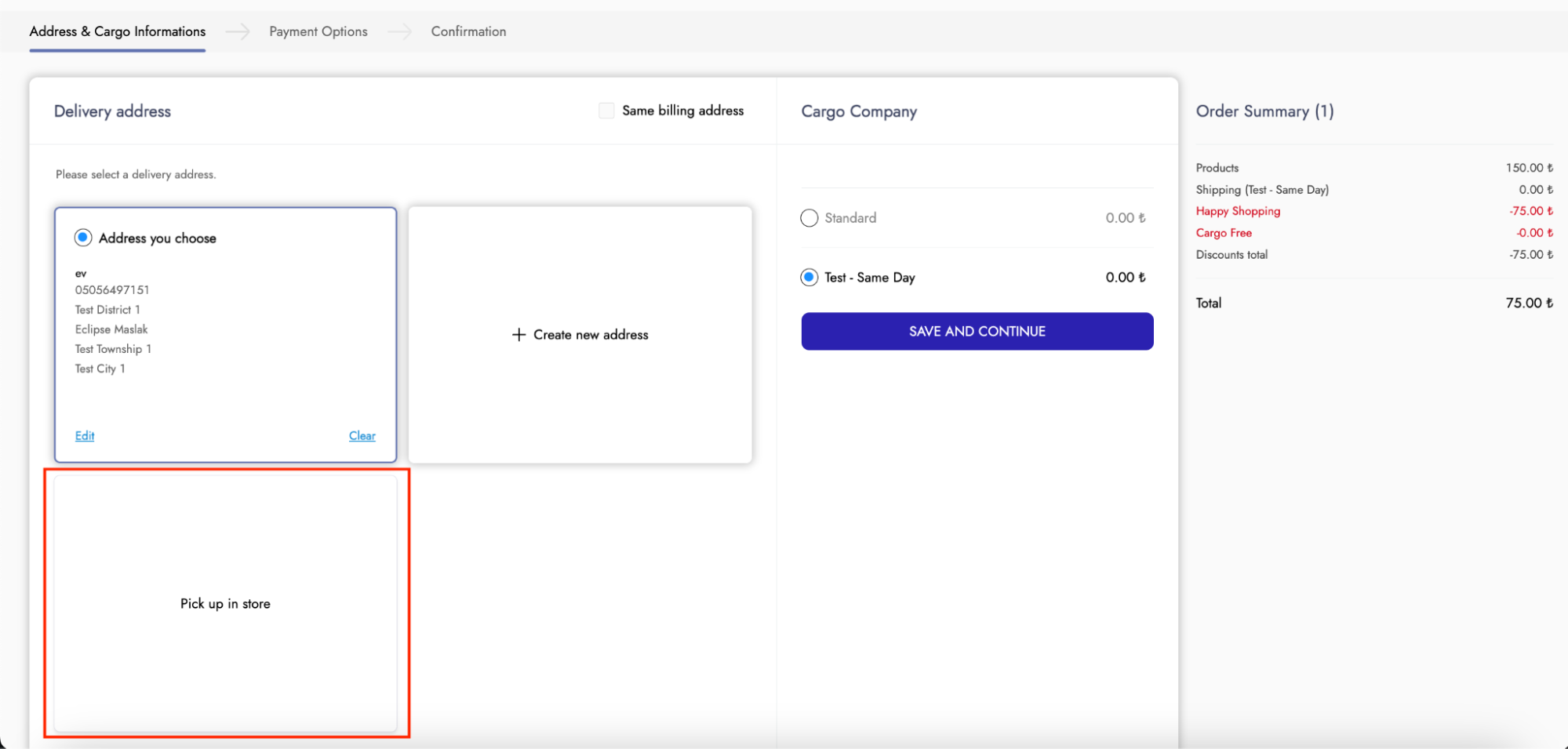 * **Show Gift Box Selection Field in Adress Section:** The setting that enables adding a gift package to orders placed via Instore and activates it on the checkout page.<br>