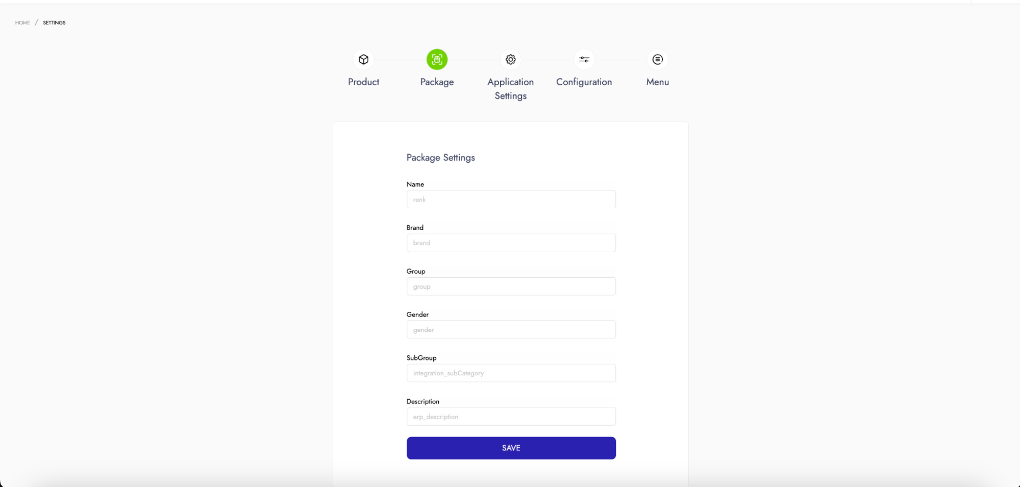 When entering the Settings screen, the second settings screen that can be displayed is called *Package Settings*. From this screen, you can customize the attributes that the application will display for packages. The settings made here allow for the customization of how any attribute available in Omnitron is displayed in the relevant fields in the Instore application for package-related information.