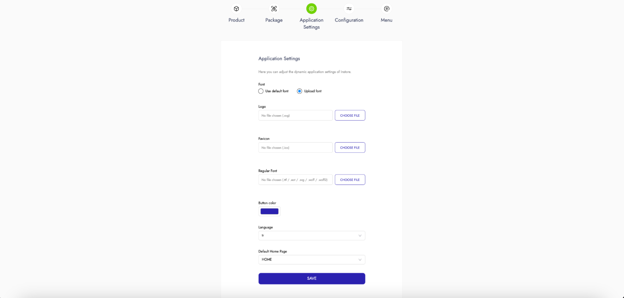 * **Font**: Instore has a default font, which is selected by default on the screen. If a custom font is desired, the font can be uploaded to the "Regular Font" field as a ".ttf" file.