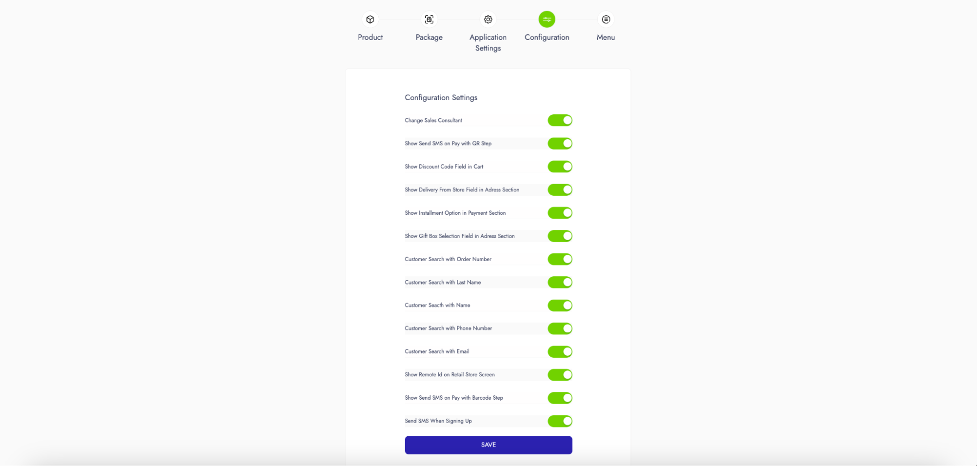 * **Show Send SMS on Pay with Barcode Step:** The setting that enables the button for sending the barcode link to the customer during barcode payment.<br>