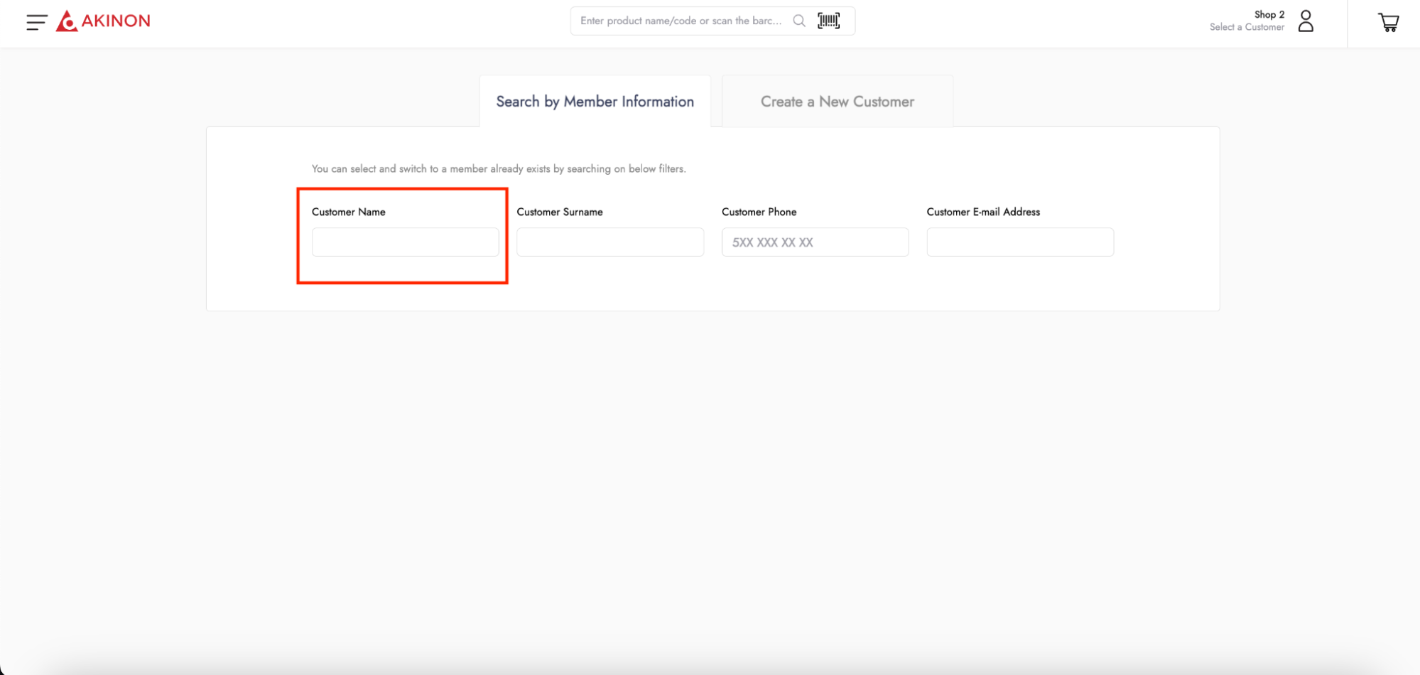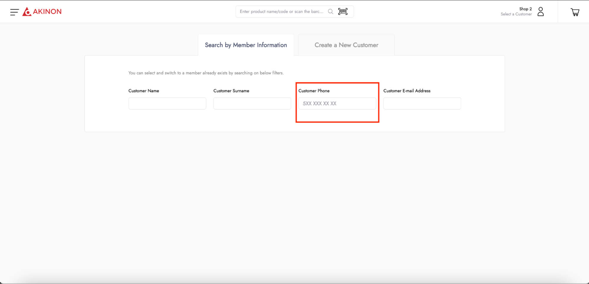 * **Customer Search with Phone Number:** The setting that enables the field for searching existing customers by phone number on the search screen.<br>