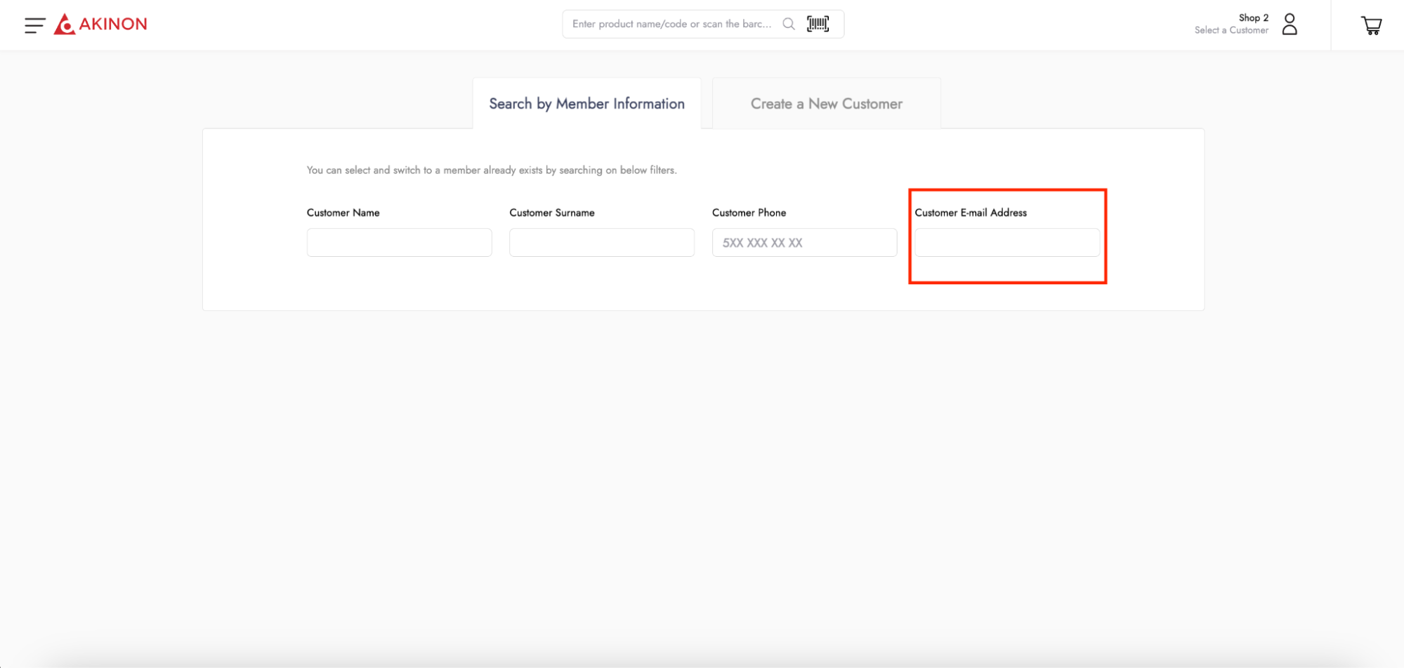 * **Customer Search with Email:** The setting that enables the field for searching existing customers by email address on the search screen.<br>