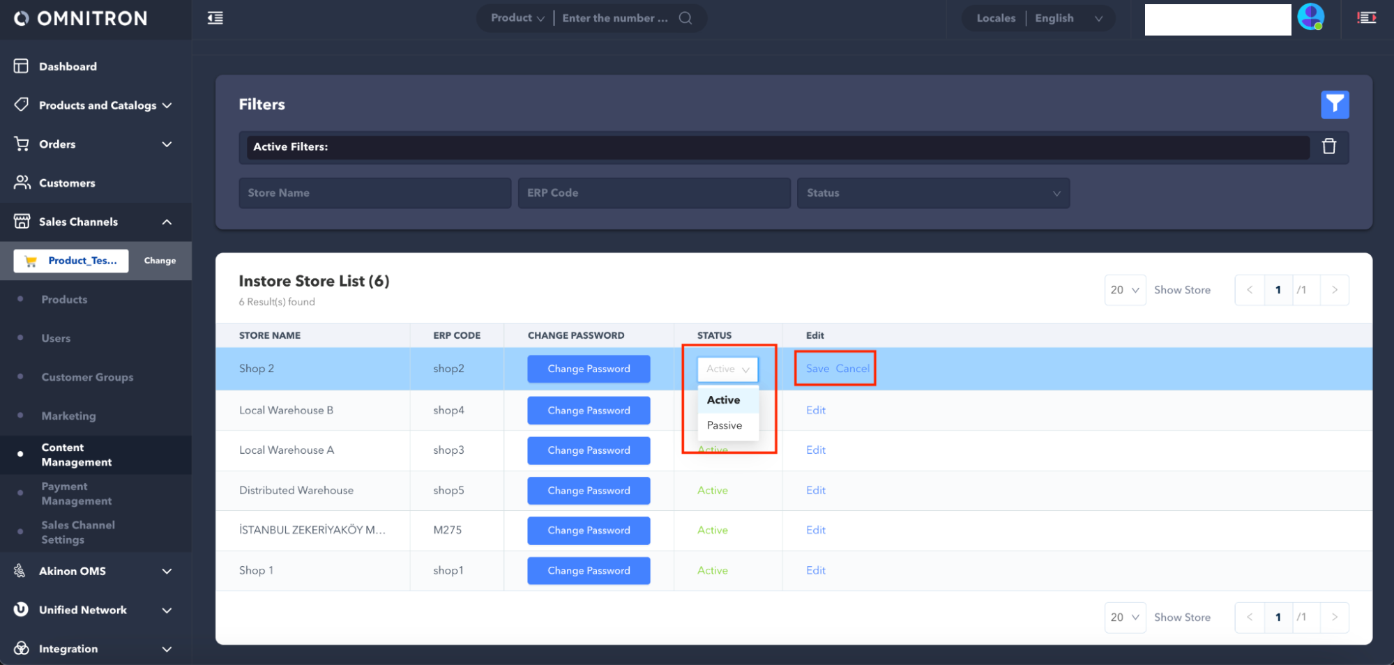 To be able to list the stores that are already listed on the *Stores* screen but not listed on the *Instore Store Management* screen, a minor update needs to be made to the store information. For this, click on the relevant store on the *Stores* screen and open the screen where the store information is located. When any update is made and the **Save** button is clicked, the store will automatically be listed on the Instore Store Management screen.