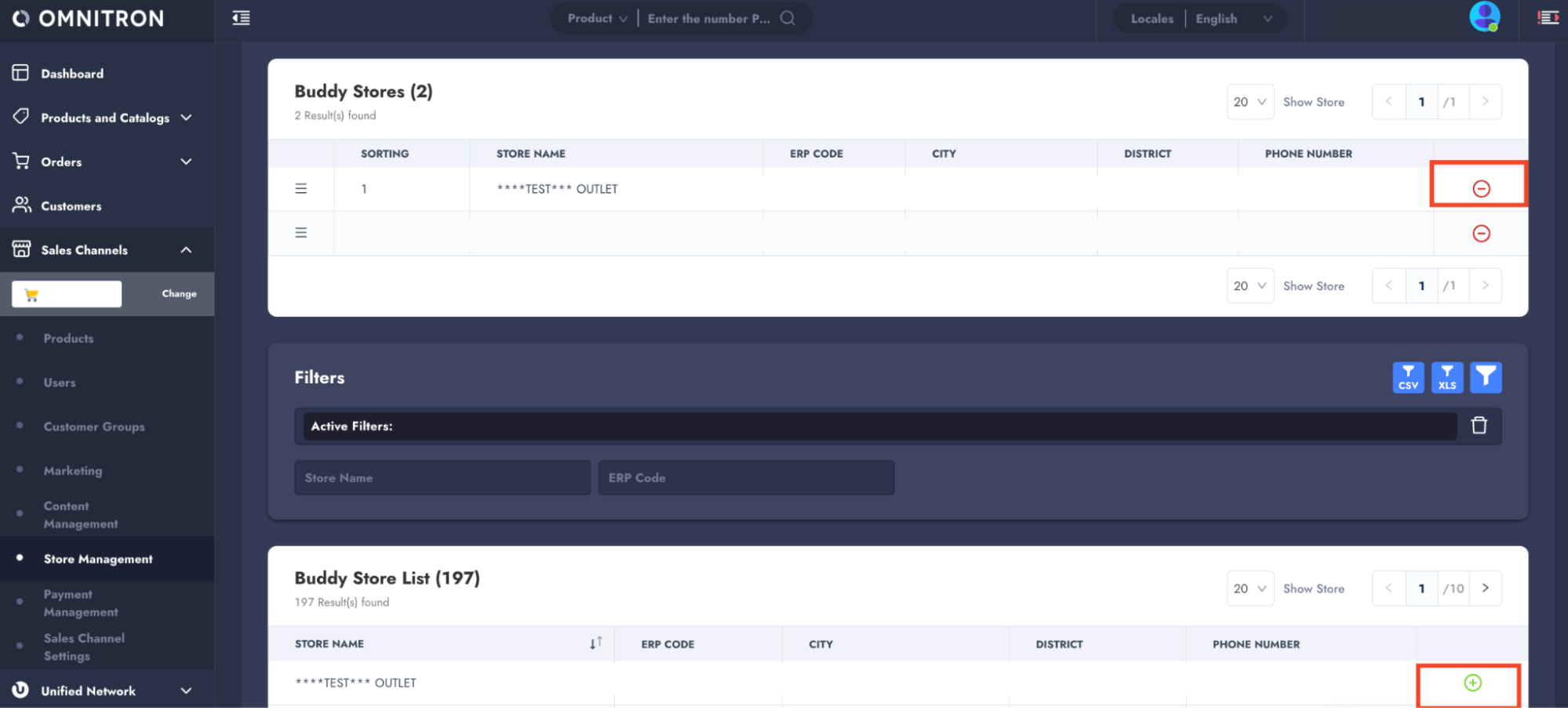 * Select buddy stores for the corresponding store by clicking the "**+**" button, where all the stores on the Omnitron are listed.
