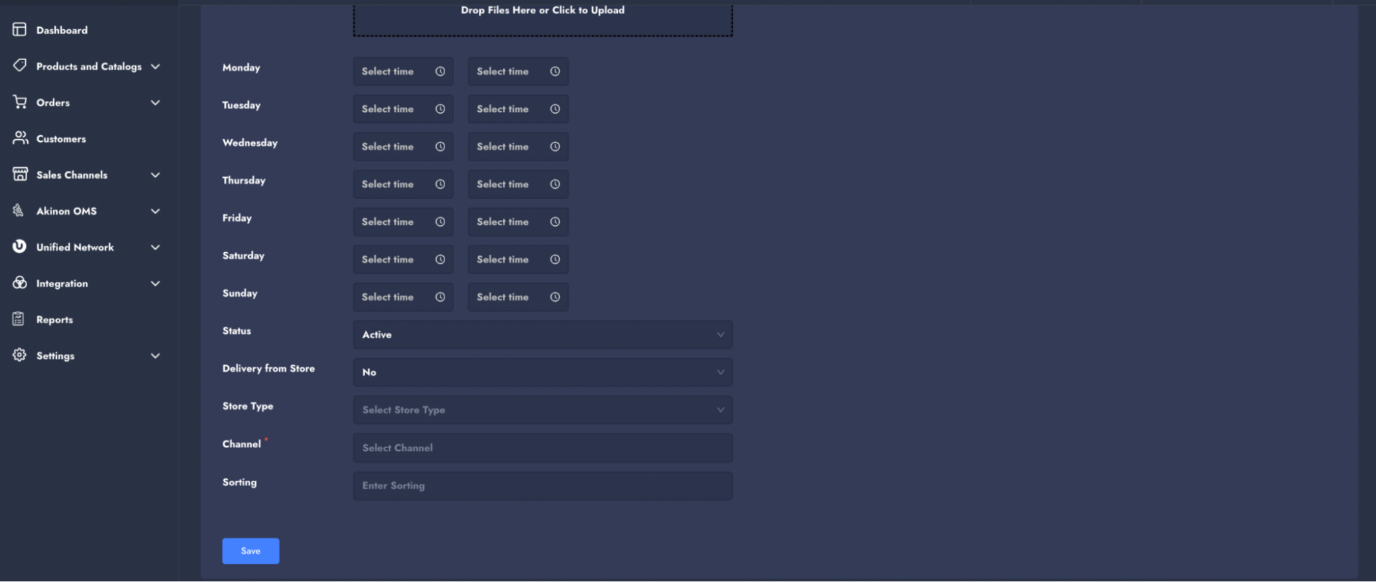 * **Work Hours:** Enter the work hours of the store for each day.