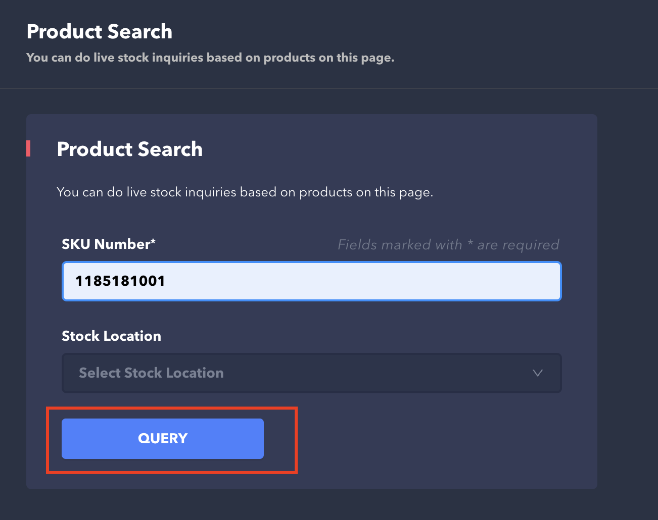 * To perform a real-time stock query of a specific product, you need to enter the product's **SKU number**.