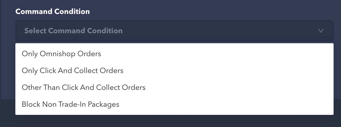Command Code: Select from the list of executable commands. Ensure that the Source and Destination States are selected correctly to display available options in the Command Code field.