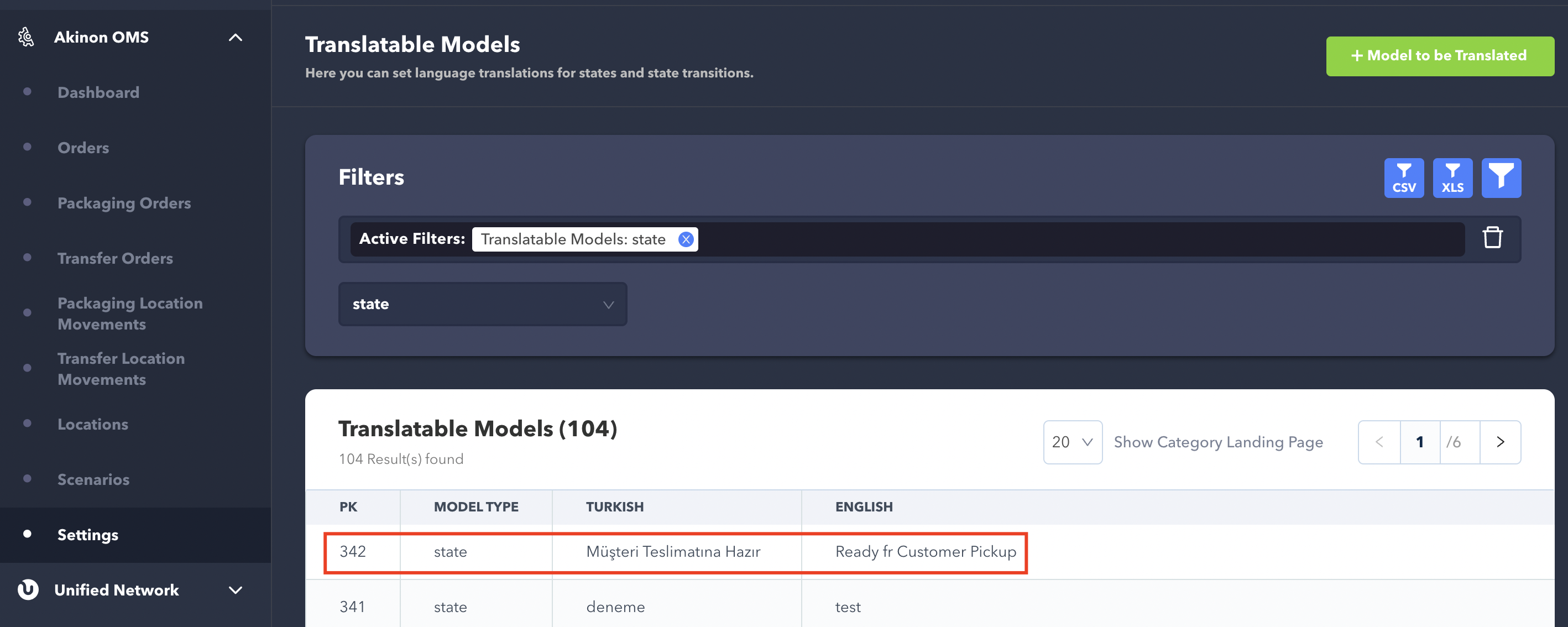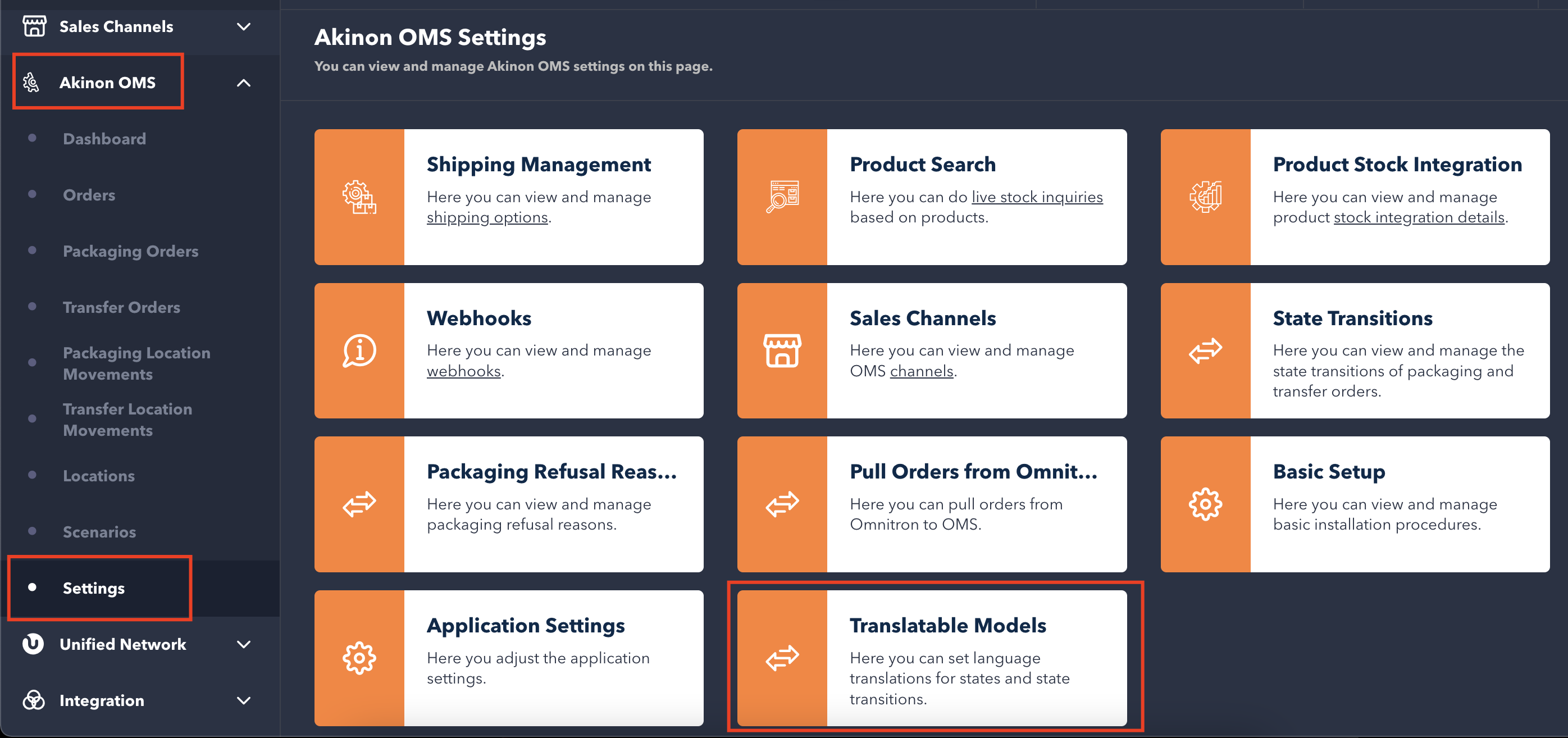 * To add a new state transition, start by selecting the **Settings** tab under the Akinon OMS menu.